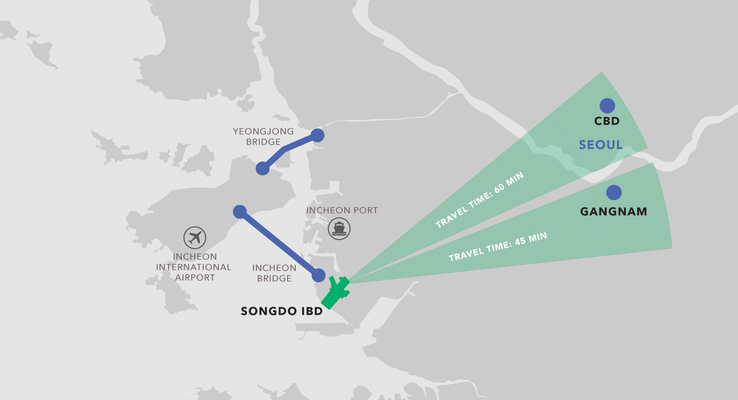송도IBD는 지난 10년간 세계 최고 서비스 공항으로 평가 받고 있는 인천국제공항과 인접해 있습니다.